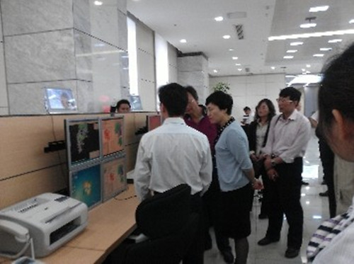 2012年5月4日,国家气象局娇梅燕副局长与华中区域气象中心领导一行,前往湖南省气象局,在技术人员的讲解下,观看我公司研发的“山洪预警系统”。